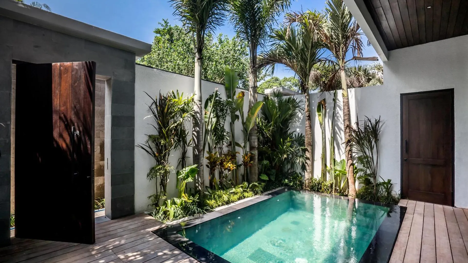 The Canggu villa is located in a premium area with direct access to the greyish Berawa Beach, which is about a 10-minute drive away.